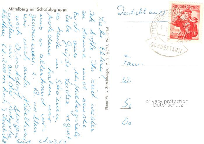 73256579 alte Postkarte Mittelberg Kleinwalsertal Panorama Blick zur Schafalpgruppe postalisch gelaufen Erhaltung siehe scans [FriedD77] KatCode: 11390