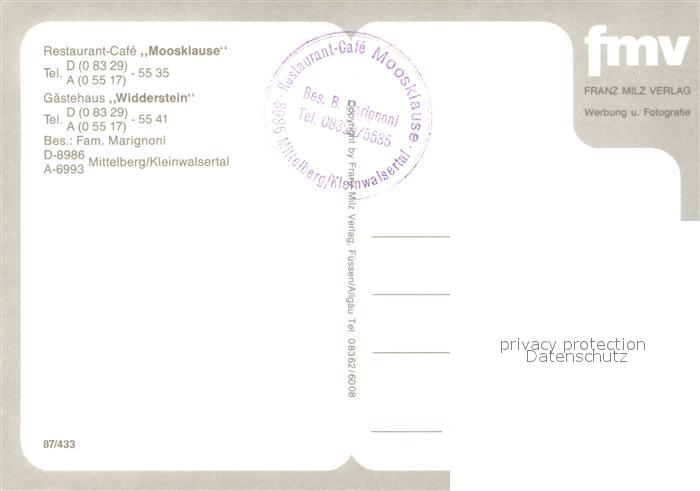 72987887 Mittelberg Kleinwalsertal Restaurant Cafe Moosklause Gaestehaus Widderstein postalisch nicht gelaufen Erhaltung siehe scans [FriedD77] KatCode: 11390