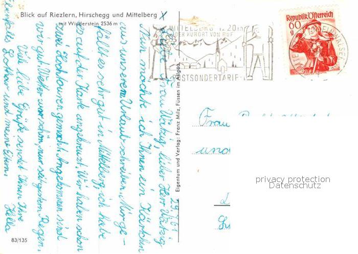 72641707 alte Postkarte Mittelberg Kleinwalsertal Riezlern Hirschegg Widderstein Riezlern postalisch gelaufen Erhaltung siehe scans [KathaD79] KatCode: 11390