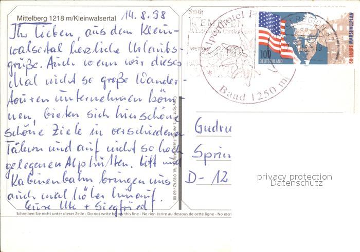 72437479 alte Postkarte Mittelberg Kleinwalsertal Seilbahn postalisch gelaufen Erhaltung siehe scans KatCode: 11390