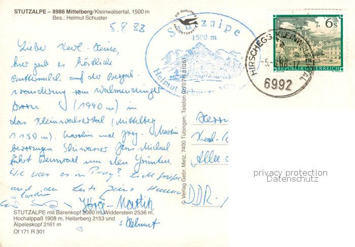 73526128 alte Postkarte Mittelberg Kleinwalsertal Stutzalpe postalisch gelaufen Erhaltung siehe scans [FriedD77] KatCode: 11390