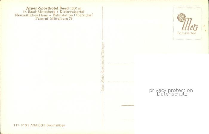 71925924 Mittelberg Kleinwalsertal Tourenkarte Alpen Sporthotel Baad postalisch nicht gelaufen Erhaltung siehe scans KatCode: 11390