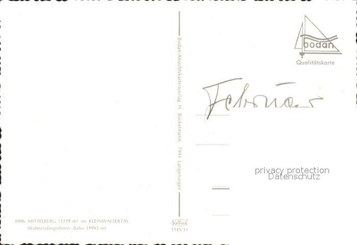 71901799 Mittelberg Kleinwalsertal Waldmendingerhornbahn postalisch nicht gelaufen Erhaltung siehe scans KatCode: 11390