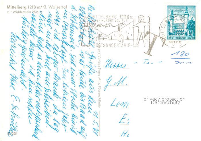 72926954 alte Postkarte Mittelberg Kleinwalsertal Widderstein postalisch gelaufen Erhaltung siehe scans [NatalD47] KatCode: 11390