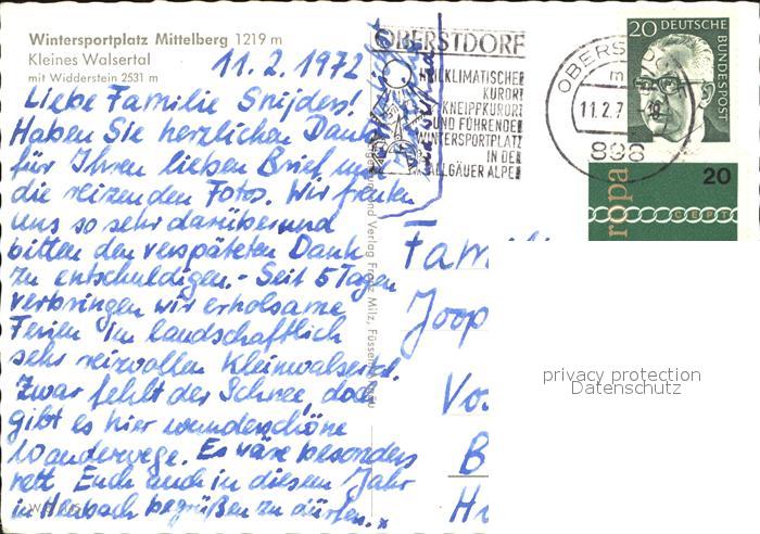 72436403 alte Postkarte Mittelberg Kleinwalsertal Widderstein postalisch gelaufen Erhaltung siehe scans KatCode: 11390