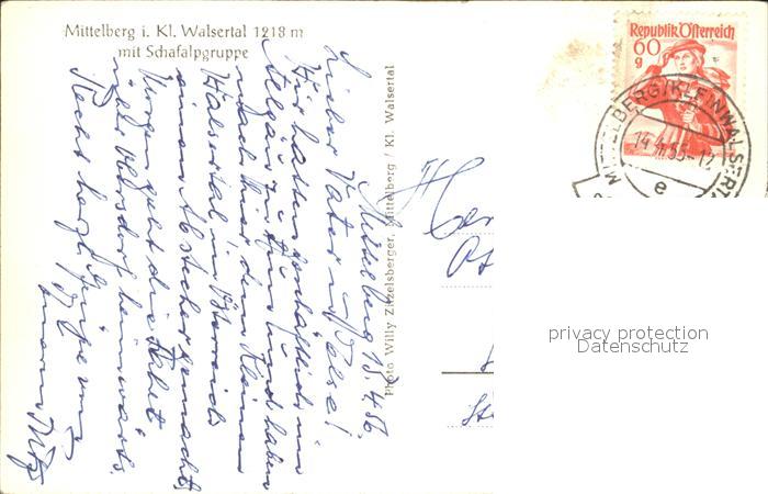 72152213 alte Postkarte Mittelberg Kleinwalsertal Winterpanorama mit Schaefalpgruppe postalisch gelaufen Erhaltung siehe scans KatCode: 11390
