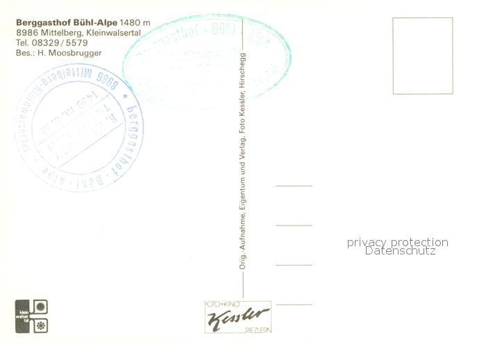73017276 Mittelberg Oy Berggasthof Buehl-Alpe postalisch nicht gelaufen Erhaltung siehe scans [NatalD47] KatCode: 11110009780128