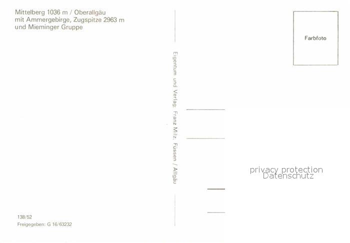 72725671 Mittelberg Oy Fliegeraufnahme mit Ammergebirge Zugspitze und Mieminger Gruppe postalisch nicht gelaufen Erhaltung siehe scans [LiesaD40] KatCode: 11110009780128
