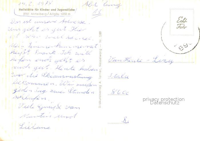 73335517 alte Postkarte Mittelberg Oy Heilstaette fuer Kinder und Jugendliche Winterlandschaft Alpen postalisch gelaufen Erhaltung siehe scans [FriedD77] KatCode: 11110009780128