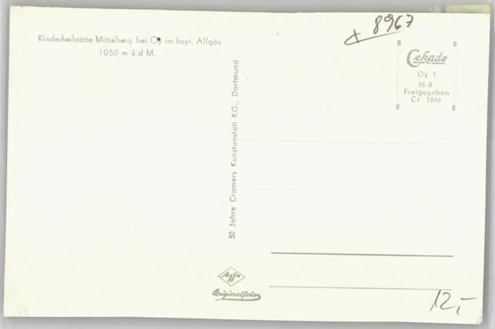 40246042 Mittelberg Oy Kinderheilstaette Fliegeraufnahme * 1955 KatCode 11110009780128