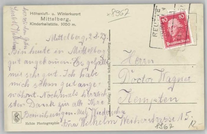 40246050 Mittelberg Oy Kinderheilstaette x 1927 KatCode 11110009780128