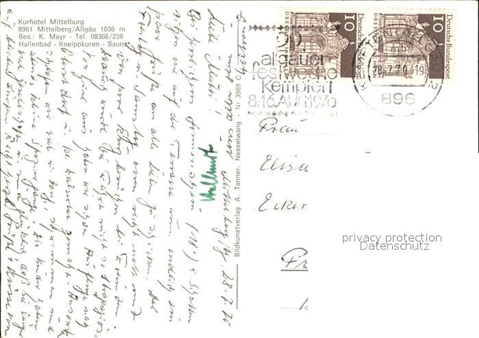 72434652 alte Postkarte Mittelberg Oy Kurhotel Mittelburg postalisch gelaufen Erhaltung siehe scans KatCode: 11110009780128