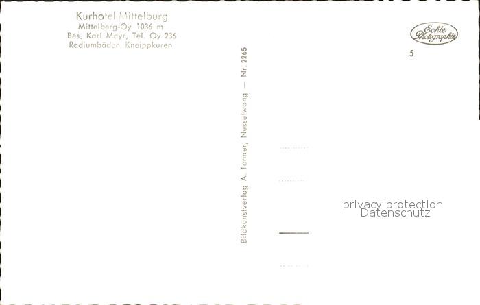 72006872 Mittelberg Oy Kurhotel Mittelburg postalisch nicht gelaufen Erhaltung siehe scans KatCode: 11110009780128