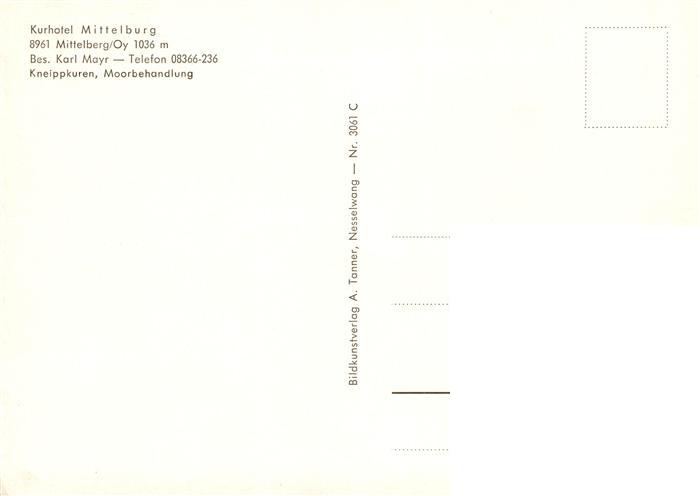 73869925 Mittelberg Oy Kurhotel Mittelburg postalisch nicht gelaufen Erhaltung siehe scans [FriedD77] KatCode: 11110009780128