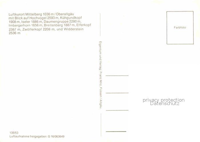 72824202 Mittelberg Oy Luftkurort Alpenpanorama Fliegeraufnahme postalisch nicht gelaufen Erhaltung siehe scans [FriedD77] KatCode: 11110009780128