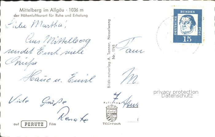 72405250 alte Postkarte Mittelberg Oy Panorama postalisch gelaufen Erhaltung siehe scans KatCode: 11110009780128
