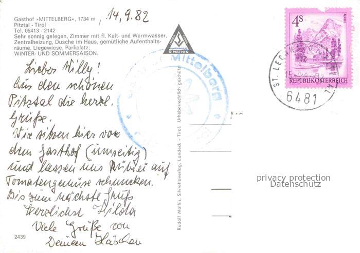 74040432 alte Postkarte Mittelberg Pitztal Tirol Gasthof Mittelberg Restaurant Kaminzimmer Alpen postalisch gelaufen Erhaltung siehe scans [FriedD77] KatCode: 11390