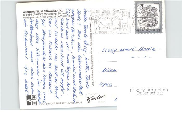 72533788 alte Postkarte Mittelberg Vorarlberg Aparthotel Kleinwalsertal postalisch gelaufen Erhaltung siehe scans [LiesaD40 kt094box] KatCode: 11390341080228