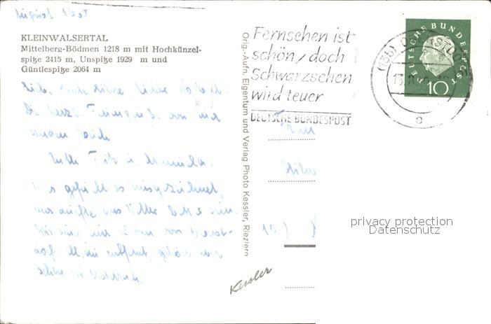 72406313 alte Postkarte Mittelberg Vorarlberg Hochkuenzelspitze postalisch gelaufen Erhaltung siehe scans KatCode: 11390341080228