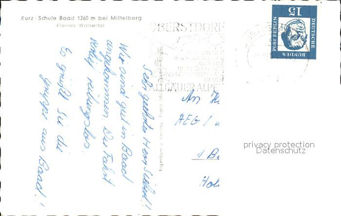 72600740 alte Postkarte Mittelberg Vorarlberg Kurz-Schule Baad postalisch gelaufen Erhaltung siehe scans [LiesaD40] KatCode: 11390341080228