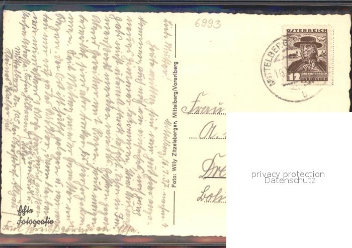 71541149 alte Postkarte Mittelberg Vorarlberg Ortsansicht mit Kirche und Schafalpenkoepfen Allgaeuer Alpen postalisch gelaufen KatCode: 11390341080228