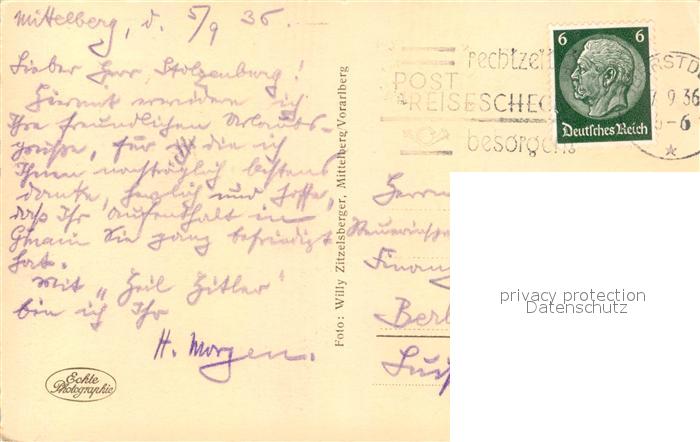 43201218 alte Postkarte Mittelberg Vorarlberg Ortsmotiv mit Kirche Blick zum Widderstein postalisch gelaufen Erhaltung siehe scans [FriedD77] KatCode: 11390341080228