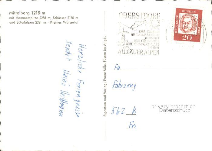71983748 alte Postkarte Mittelberg Vorarlberg Panorama mit Hammerspitze Schuesser Schafalpen Kleines Walsertal postalisch gelaufen Erhaltung siehe scans KatCode: 11390341080228