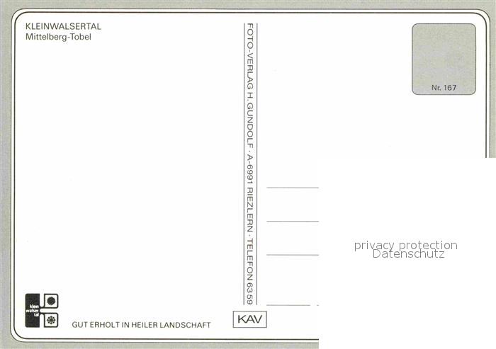 72644032 Mittelberg Vorarlberg Tobel Kleinwalsertal postalisch nicht gelaufen Erhaltung siehe scans [FriedD77] KatCode: 11390341080228