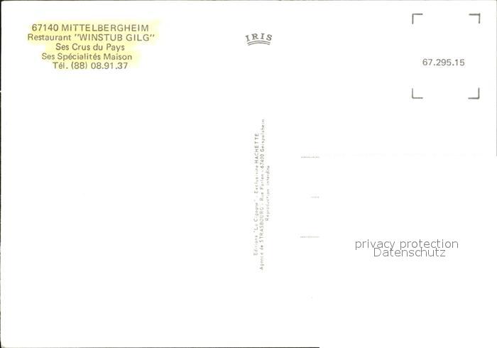 12431542 Mittelbergheim Winstub Gilg Fachwerk postalisch nicht gelaufen Erhaltung siehe scans KatCode: 11170067567295