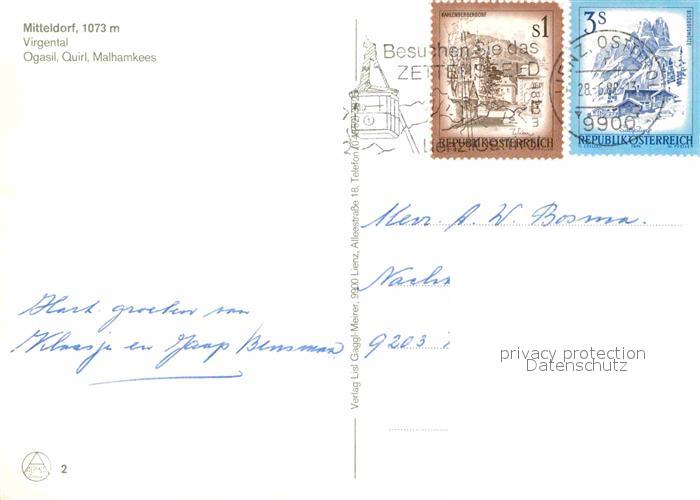 72887410 alte Postkarte Mitteldorf Virgen Ogasil Quirl Malhamkees postalisch gelaufen Erhaltung siehe scans [WerneD78] KatCode: 11390333070734