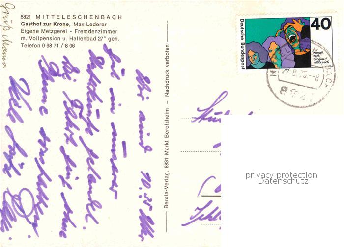 72897359 alte Postkarte Mitteleschenbach Gasthof zur Krone Terrasse Zimmer Hallenbad postalisch gelaufen Erhaltung siehe scans [WerneD78] KatCode: 11110009571178