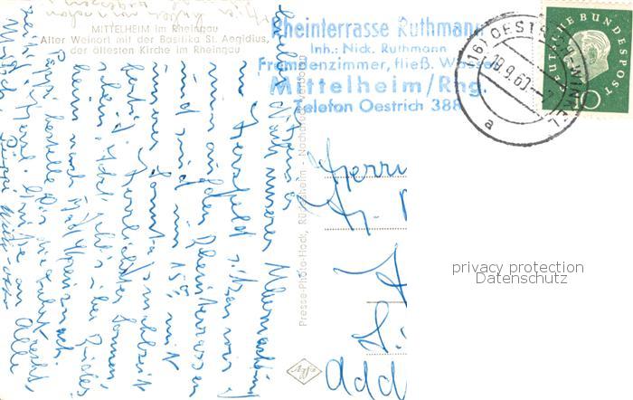 73832459 alte Postkarte Mittelheim Rheingau Blick ueber den Rhein postalisch gelaufen Erhaltung siehe scans [FriedD77] KatCode: 11110006439012