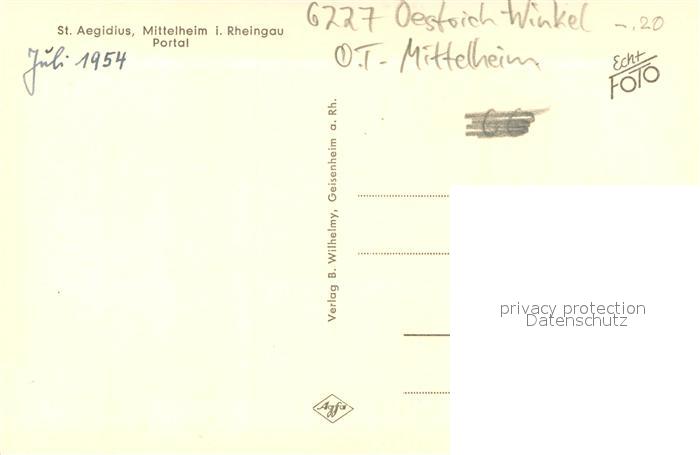 73696549 Mittelheim Rheingau St. Aegidius Kirche Portal postalisch nicht gelaufen Erhaltung siehe scans [FriedD77] KatCode: 11110006439012