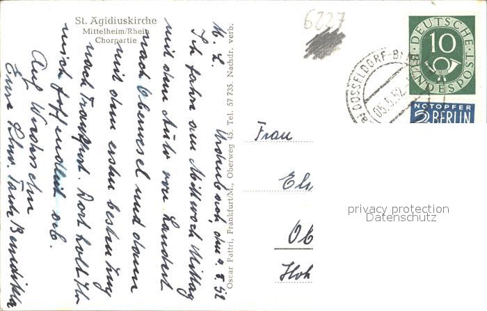 72092367 alte Postkarte Mittelheim Rheingau St. aegidiuskirche Chorpartie postalisch gelaufen KatCode: 11110006439012