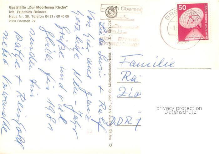 73731701 alte Postkarte Mittelsbueren Gaststaette zur Moorlosen Kirche postalisch gelaufen Erhaltung siehe scans [LiesaD40] KatCode: 11110004011000
