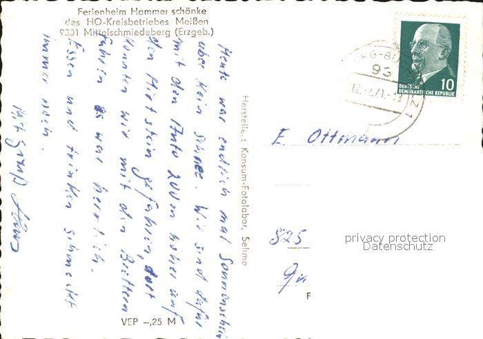 72472368 alte Postkarte Mittelschmiedeberg Ferienheim Hammreschaenke postalisch gelaufen Erhaltung siehe scans KatCode: 11110014171210
