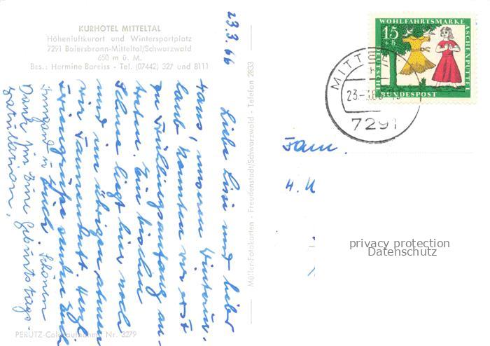 74095592 alte Postkarte Mitteltal Baiersbronn Schwarzwald BW Kurhotel Mitteltal Grosser Saal postalisch gelaufen Erhaltung siehe scans [WerneD78] KatCode: 11110008237004