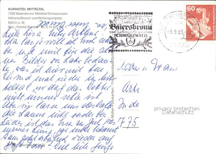 72381464 alte Postkarte Mitteltal Schwarzwald Baiersbronn Kurhotel Mitteltal postalisch gelaufen Erhaltung siehe scans KatCode: 11110008237004
