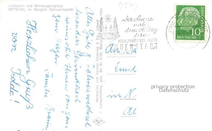 74023099 alte Postkarte Mitteltal Schwarzwald Fliegeraufnahme postalisch gelaufen Erhaltung siehe scans [WerneD78] KatCode: 11110008237004