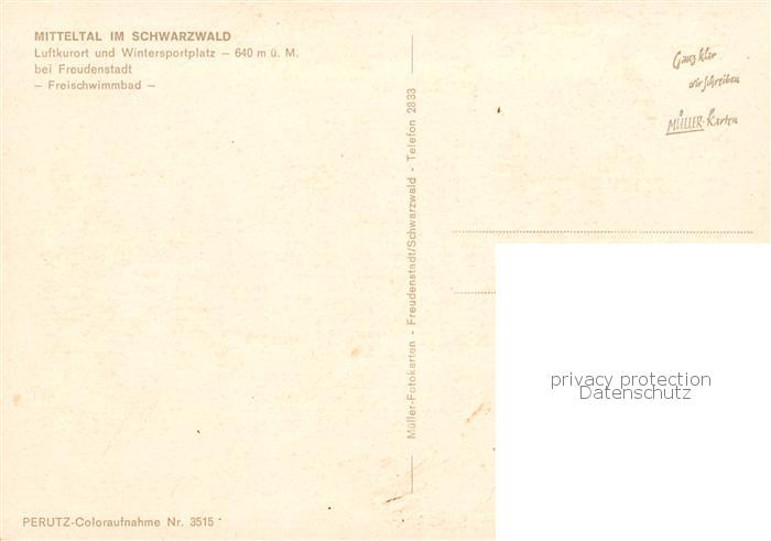 73864547 Mitteltal Schwarzwald Freischwimmbad postalisch nicht gelaufen Erhaltung siehe scans [WerneD78] KatCode: 11110008237004