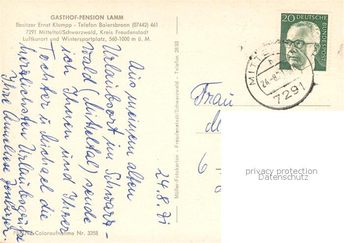 73645139 alte Postkarte Mitteltal Schwarzwald Gasthof Pension Lamm postalisch gelaufen Erhaltung siehe scans [WerneD78] KatCode: 11110008237004