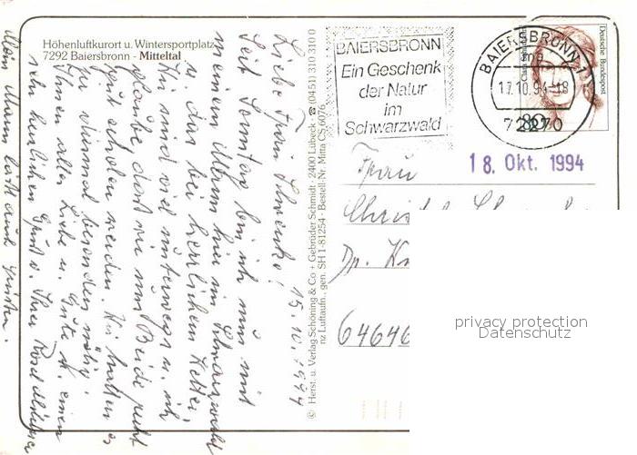72878847 alte Postkarte Mitteltal Schwarzwald Hoehenluftkurort Wintersportplatz Fliegeraufnahme postalisch gelaufen Erhaltung siehe scans [FriedD77] KatCode: 11110008237004