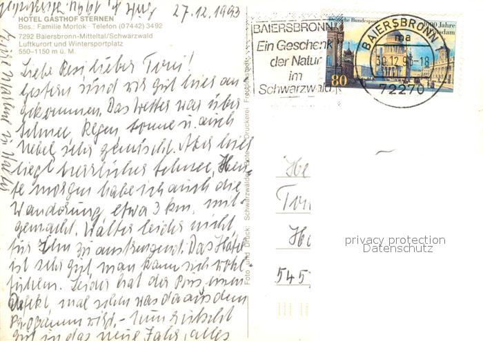 73128527 alte Postkarte Mitteltal Schwarzwald Hotel Sternen postalisch gelaufen Erhaltung siehe scans [NatalD47] KatCode: 11110008237004