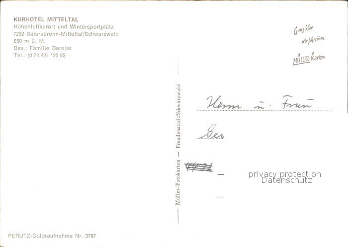 72109624 Mitteltal Schwarzwald Kurhotel Mitteltal postalisch nicht gelaufen Erhaltung siehe scans KatCode: 11110008237004