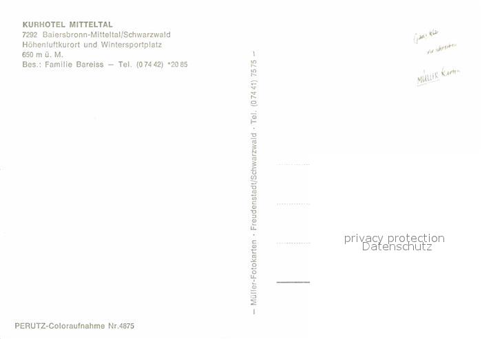 72715662 Mitteltal Schwarzwald Kurhotel Mitteltal Restaurant postalisch nicht gelaufen Erhaltung siehe scans [FriedD77] KatCode: 11110008237004