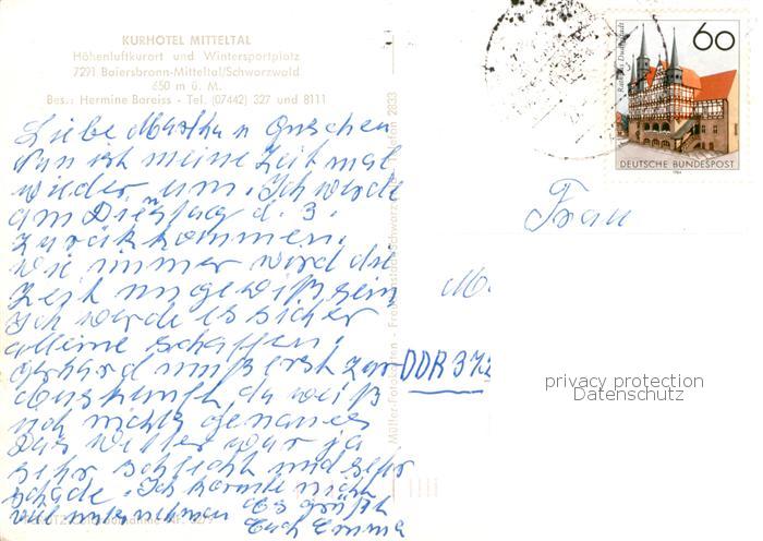73837021 alte Postkarte Mitteltal Schwarzwald Kurhotel postalisch gelaufen Erhaltung siehe scans [FriedD77] KatCode: 11110008237004