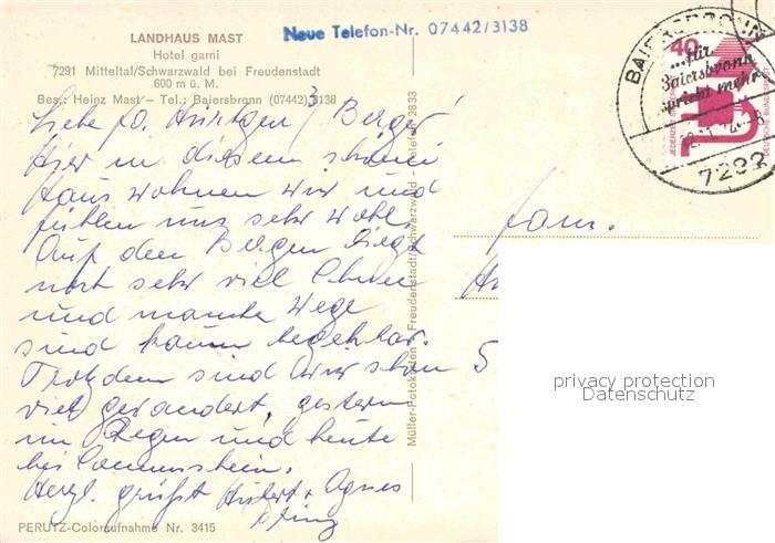 72656844 alte Postkarte Mitteltal Schwarzwald Landhaus Mast postalisch gelaufen Erhaltung siehe scans [AndreD76] KatCode: 11110008237004