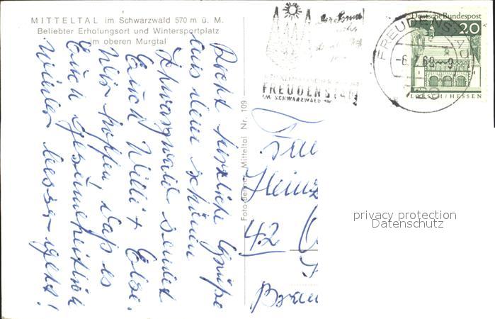 72250379 alte Postkarte Mitteltal Schwarzwald mit Breitmiss postalisch gelaufen Erhaltung siehe scans KatCode: 11110008237004