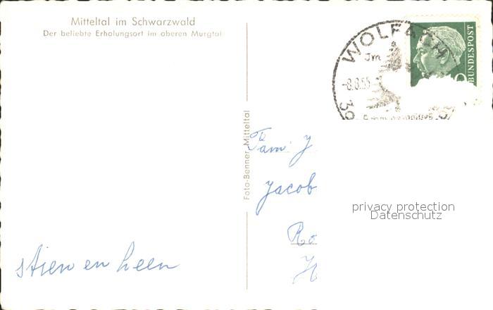 72073868 alte Postkarte Mitteltal Schwarzwald Ortsansicht mit Kirche postalisch gelaufen KatCode: 11110008237004