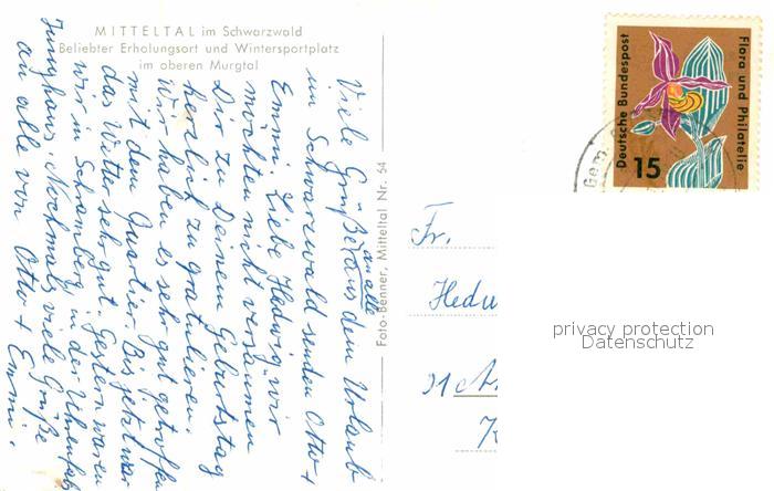 72748899 alte Postkarte Mitteltal Schwarzwald Panorama postalisch gelaufen Erhaltung siehe scans [AndreD76] KatCode: 11110008237004
